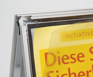 Oboustranný venkovní A-stojan se stabilními hliníkovými nohami a dvěma eloxovanými klap-rámy 32 mm, ve stříbrném provedení. Stojan disponuje nárazuvzdornými pozinkovanými podložkami, vodotěsnou krycí fólií a odvodňovacími otvory. Stojan je vhodný pro venkovní používání.