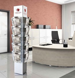 Obousměrně otáčivý čtyřstěnný reklamní stojan Four face je vyroben z hliníkových panelů a lze ho snadno vybavit kapsami na brožury, které jsou vyrobeny z polykarbonátu a jsou tedy velice odolné proti nárazům a jiným poškozením. Kapsy lze jednoduše uzpůsobit pro formáty A4, A5 či alternativně A6 a to díky zářezům na všech plochách stojanu, do kterých se kapsy jednoduše zacvaknou.