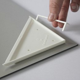 Neviditelný montážní systém pro značky, panely nebo obrazy. Systém umožňuje umístit panel nebo obraz rovně i v případě uchycení šroubů s výškovým rozdílem 5 cm. Velmi jednoduché i pro laiky. Součástí jsou šrouby i hmoždinky.