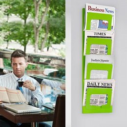 Elegantní a nadčasový nástěnný pořadač. Vhodný do recepcí, kanceláří, jednacích místností, čekáren apod. Snadná instalace, dodáváno včetně sady pro upevnění na zeď. Složeno ze 4 kapes pro materiály různých formátů a velikostí.