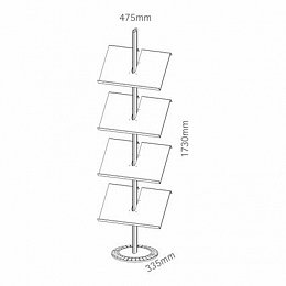 Palo obsahuje celkem 8 šikmých akrylátových polic velikosti A4, kde vždy dvě jsou posazeny vedle sebe. Díky využití hliníkových profilů soistes lze výškové umístění a náklon polic libovolně regulovat.