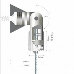 Polohovatelný lankový držák na zeď, který je možné použít v kombinaci s ocelovým lankem. Maximální tloušťka lana 1,8 mm. K dostání ve dvou různých barevných variantách.