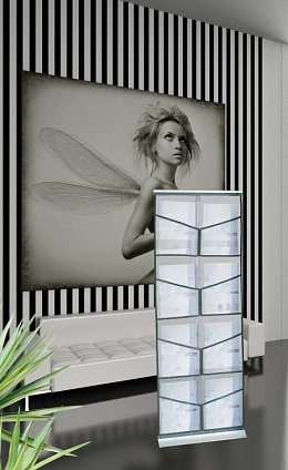 Textilní skládací stojan na letáky. 8 kapes A4.