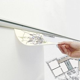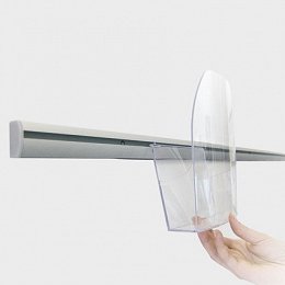 Dacapo je multifunkční lišta z eloxovaného hliníku k upevnění na zeď. Je možné na ni zavěsit kapsy na letáky ve formátu A4, A5 a A6 a zároveň ji můžete využít i jako úchyt pro jednotlivé listy papíru (letáky, plakáty, fotografie atd.).