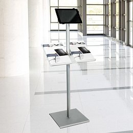 Pad woman je samostatně stojící výstavní stojan ideální pro vytvoření dokonalé interaktivní prezentace. iPad lze díky speciálnímu šroubu na zadní straně držáku jednoduše otočit pro horizontální i vertikální prezentaci. Všechny použité materiály jsou velmi kvalitní a odolné, design stojanu je robustní, přesto elegantní. V příslušenství lze dokoupit kapsy na letáky A4.
