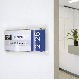 Zaklapávací rám pixquick lze pomocí šroubů připevnit na zeď. Informační materiály v rámu jsou snadno vyměnitelné.