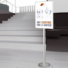 Reklamní stojan Stopinfo využijete pro jakoukoliv interiérovou prezentaci. Informační plakáty v akrylátovém rámu jsou snadno a rychle vyměnitelné a stojan lze doplnit policemi na letáky nebo hliníkovou tyčí, na kterou je možné zavěšovat nejrůznější zboží, popř. i další informační materiály.