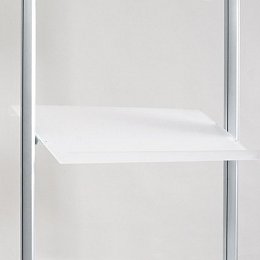 Pojízdný display Rack obsahuje 3 police z matného akrylátu, z nichž na každou lze umístit 3 letáky/brožury/katalogy velikosti A4. Police jsou polohovatelné a jejich výška se dá ve stojanu snadno upravit.