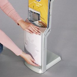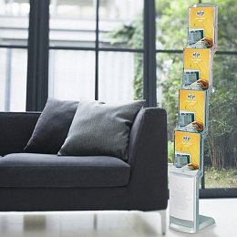 Přenosný stojan na letáky A4, stříbrný s kapsou pixquick