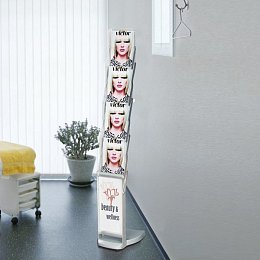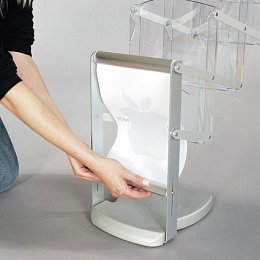 Stojan na letáky Smartzip se skládá ze 4 kapes velikosti A5 a do spodní části je možné umístit malý potištěný banner. Díky své nízké váze a skladnosti se snadno přemísťuje a je tedy vhodný především pro vaši mobilní prezentaci.
