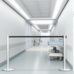 Mobilní vymezovací sloupek s páskou v délce 2,1 m. Slouží k oddělení prostoru na úřadech, poštách, nádražích, v hotelech a na mnoha dalších místech.
